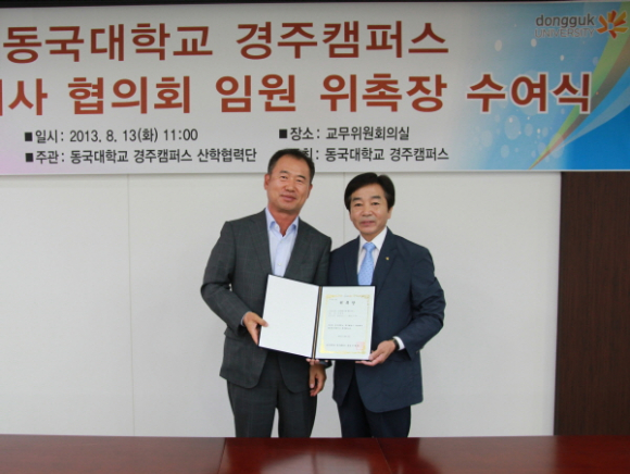 동국대학교 경주캠퍼스(총장 이계영)는 지난 13일 오전 11시 교내 백주년기념관에서 가족회사 협의회 임원 위촉장 수여식을 개최했다.