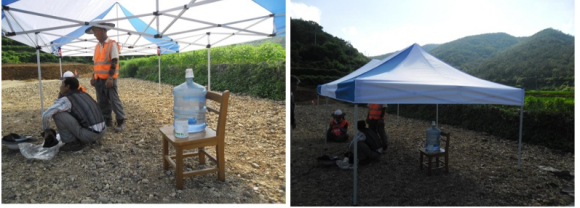 주요 점검사항으로는 잦은 강우에 따른 급경사지 붕괴, 낙석, 지반침하 등 이상징후를 점검하고, 시공 중인 광해방지사업지에 대하여는 폭염대비 임시대피소 설치, 무더위 휴식시간제(14:00 ~ 17:00)운영, 안전교육 등 폭염대응대책 수립여부 및 운영여부에 대해 점검을 한다.