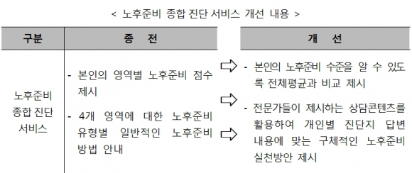 < 노후준비 종합진단서비스 개선 내용 >