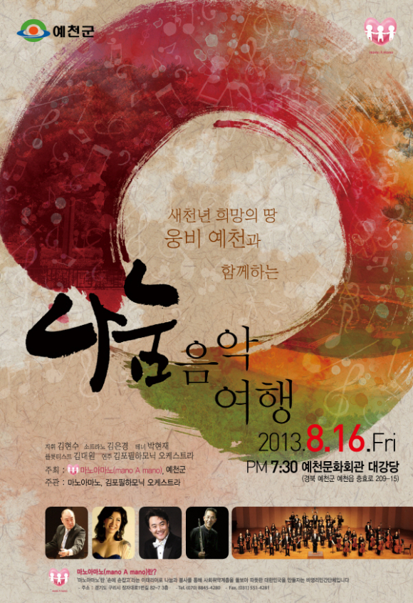 한여름 밤을 시원하게 적셔 줄 세계 최정상급 음악가들이 펼치는 클래식 공연「나눔 음악여행」이 오는 16일 저녁 7시 30분 예천군 문화회관 대공연장에서 개최된다.