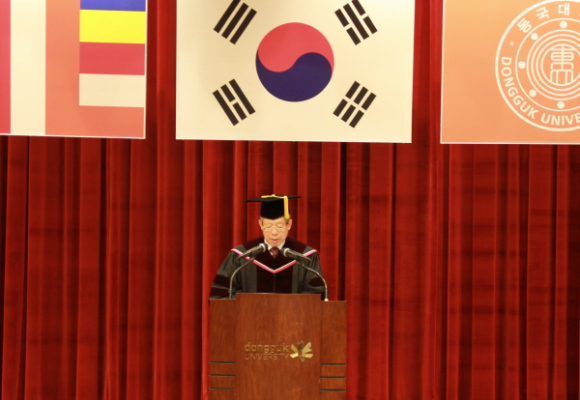 김희옥 동국대학교 총장은 졸업생들에게 “동국의 자랑과 명예를 늘 가슴에 품고 어느 자리에 어떻게 있던 늘 주인 된 마음으로 세상을 경영해 나가길 바란다”고 말했다.