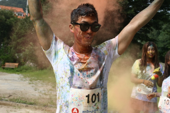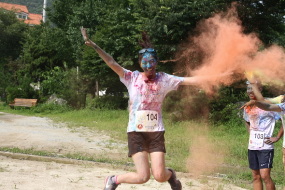 |  | | | ⓒ GBN 경북방송 | | 달리기 코스에는 이벤트 존마다 색다른 체험을 즐길 수 있는데 1코스(청송군청 앞)에선 걷고 뛰는 동안 '색색가루'를 뒤집어쓰게 된다. 이때 쓰이는 다양한 색색가루는 인체에 무해하며 먹을 수도 있는 것이라 안심하고 즐기면 된다.