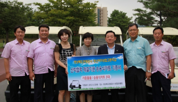 이번 기증은 지난달 16일 경상북도관광공사와 경산여자상업고등학교간 체결한 산학협력 업무 협약에 따라 학생들에게 취업 전 카트 운전에 대한 실습 기회를 제공하고자 마련되었다.이에 따라 골프산업과 학생들은 현장에서 실습할 수 있는 승용식 골프카트 운전을 학교에서 미리 능숙하게 습득해 졸업과 동시에 바로 취업이 가능하게 되었다.