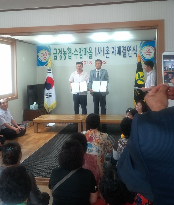 결연식에서 수암리 이장 유기수는 “도시와 농촌이 더불어 살아 갈 수 있는 계기를 마련해 준 부산 금정농협에 깊은 감사의 말씀을 드린다.”하고 “로하스 영덕의 깨끗한 환경과 우수한 품질의 청정영덕농산물을 지속적으로 보존하고 가꾸어나가 도시와 농촌이 함께 즐길 수 있도록 하겠다.”고 약속했다.
