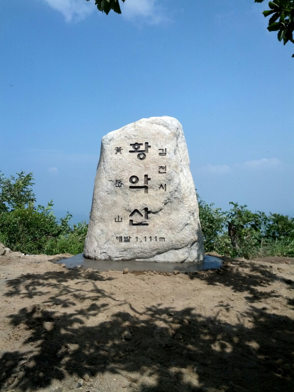 |  | | | ⓒ GBN 경북방송 | | 금번 표지석을 설치한 곳은 한반도의 생태축인 백두대간 능선에 위치하고 직지사, 청암사, 수도암등의 고찰이 자리하며 경관이 수려해 등산객들의 사랑을 한 몸에 받고 있는 산으로, 황악산(높이 1.8m 폭 1.2m), 대덕산(높이1.5m 폭 1.2m) 수도산(높이1.1m 폭0.8m)의 대형 표지석은 앞면에는 산이름과 높이를(황악산 1,111m, 대덕산1,290m, 수도산1,317m)뒷면에는 산의 유래와 전설을 새겨 의미를 생각하도록 했다.