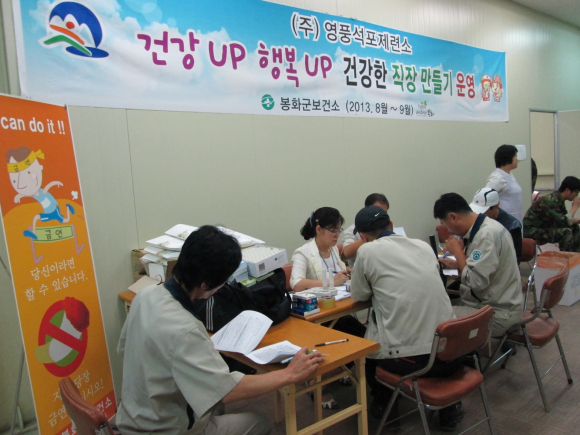 이에 봉화군 보건소는 8월23일부터 9월말까지 봉화군 사업체중 가장 인원수가 많으며 지리적으로 의료기관 접근성이 가장 떨어진 (주)영풍석포제련소에 『건강 up 행복 up 건강한 직장 만들기』프로그램을 운영한다.