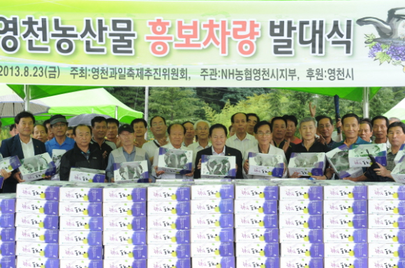 |  | | | ⓒ GBN 경북방송 | | 행사에 참석한 홍보단 회원들은“과일의 고장 명성답게 알도 굵고 당도도 높고 정말 맛이 일품이다!”며 “영천 농산물 홍보뿐만 아니라 10월에 있을 영천한약과일축제 홍보에도 최선을 다하겠다.”고 결의했다.