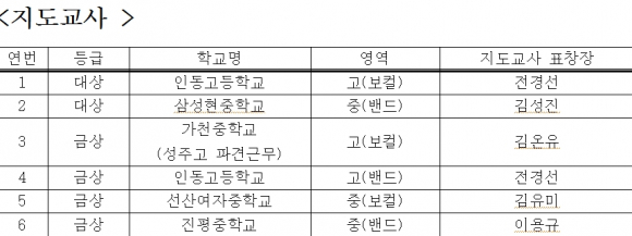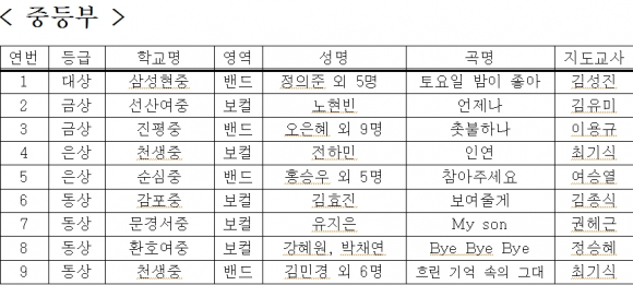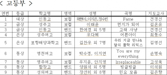 제4회 경북학생실용음악제 시상자 명단 경상북도학생문화회관