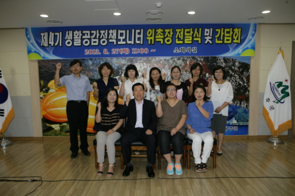 성주군(군수 김항곤)은 제4기 생활공감정책 모니터 위촉장 전달식 및 간담회를 개최하여 그 동안의 활동을 치하하고 앞으로 더욱더 활발히 활동하기로 결의를 다지는 시간을 가졌다.
