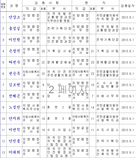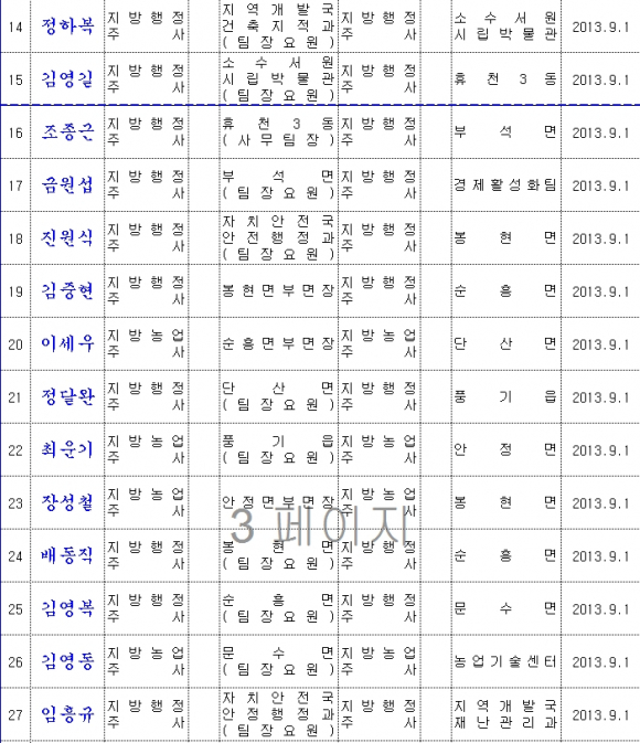 영주시 인사발령