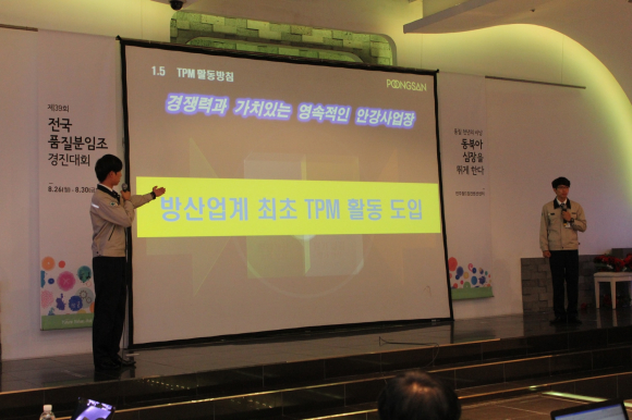 풍산은 정부의 원가보전 의식이 강한 방위산업에서 노사가 함께 혁신활동을 추진해 혁신적인 품질향상과 원가절감을 이뤘다. 2008년 방산업체 최초로 전원참가 보전활동을 도입하고 "MY Machine", "5S 명소" 등 특색있는 혁신활동으로 주목받았다. 풍산은 혁신활동 성과를 바탕으로 적극적인 해외시장을 개척해 2008년 이후 6년간 국내 방산수출 1위 달성해 우수 방산업체 표창, 한국TPM대상을 수상하기도 했다. 풍산 박우동 방산총괄은 "올해 폭염보다 더 뜨거웠던 사원들의 혁신열기가 이번 대통령상 금,은상 수상의 원동력이라고 생각한다"고 말했다. 산업계의 전국체전으로 불리는 전국 품질분임조 경진대회는 16개 시도에서 선발된 291개팀, 4천명의 분임원들이 참가해 13개 부문에서 치러졌으며 오는 11월 국가품질경영대회에서 시상식이 열린다.