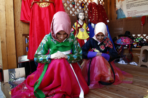 이들 중 대다수가 ‘K-POP 페스티벌’의 예매권을 구입했다고 자랑스럽게 말했다. 터키의 명문인 이스탄불대학교에 재학 중인 치쌈(19)은 히잡(머리와 목을 가리는 스카프)을 두른 채, 자주색 꽃자수가 놓인 저고리에 연분홍 치마를 입어봤다. 큰절이라고는 처음 해봤을 텐데 두 손을 곱게 모아 고개를 다소곳이 숙인 모습이 단아하다.