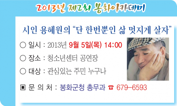 제2회 봉화아카데미 운영시인 용혜원의 “단 한번뿐인 삶 멋지게 살자”