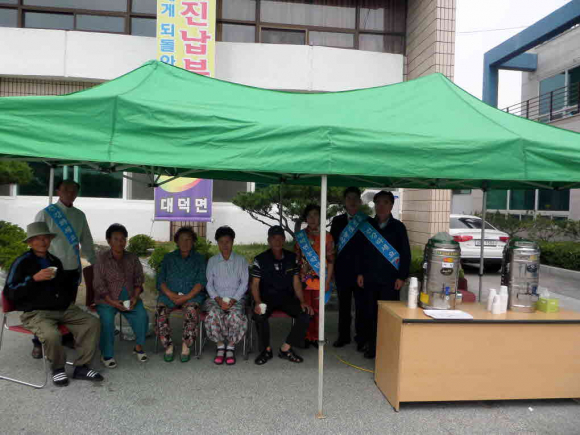 이날 음료봉사에는 농악단장과 함께 농악단원들이 커피와 녹차 음료봉사활동을 전개 대덕의 아름다운 인심을 전하며 주민들에게 정성을 다해 대접했다. 또한 정영우 대덕면장은 지역면민을 위해 음료봉사를 하는 농악단원들을 격려했으며, 함께 음료봉사를 하는 등 훈훈한 모습을 보여 주었다. 대덕면 주민들은 “이렇게 음료봉사를 하니 대덕의 따뜻한 정이 흘러넘쳐 면민 화합이 저절로 되는 것 같아 기쁘고 농악단 발전을 위해 열심히 응원하겠다.” 라며 밝은 표정으로 예방접종을 했다.