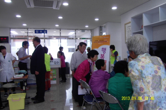 이번 합동 무료검진은 신경과, 안과, 재활의학과, 내과, 성형외과 등 6명의 전문의를 포함한 30명의 의료진이 참여하여 약 100여명의 주민을 진료하며, 상주시보건소에서는 『건강+ 행복+』에 대한 홍보부스도 운영하며,