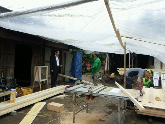 이 가구에 대해 3개월전 가장 긴급한 필요성이 있던 욕실을 만들어 성인이 된 자녀들이 외부에서 훤히 보이는 수돗가에서 목욕을 하는 열악한 환경을 쾌적하게 개선했고, 지난 6일부터는 민간의 집수리 자원봉사단을 투입하여 무너진 지붕을 보수하고 주방과 방을 만들어 대가족이 편안한 생활을 할 수 있도록 추석 전에 완공을 목표로 추진하고 있다.