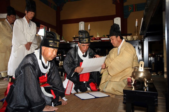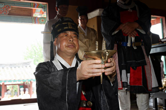 석전대제는 매년 음력 2월과 8월의 상정일(上丁日)에 공자를 모시는 사당인 문묘에서 지내는 큰 제사를 가리키며, 공자와 옛 성인들의 학덕을 추모하는 의식으로,