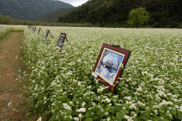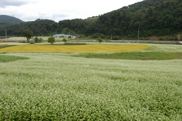 봉화군농업기술센터(소장 박만우)은 9일 ~ 27일 소천면 임기리(감전마을) 하늘이 닿는 메밀단지에 소금 빛 메밀꽃이 낙동강 시발 지 협곡을 따라 끝없이 이어져 발길 바쁜이도 허수아비가 되어 버린 곳, 『빨리 오이소! 』그대를 반갑게 초대하고 있습니다.