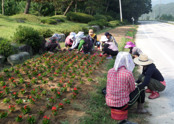 이번 꽃길조성에는 가을꽃(사루비아,메리골드) 3,000본을 국도3호선 가로화단에 심었으며, 더불어 가로변 풀베기 작업을 병행했다.
