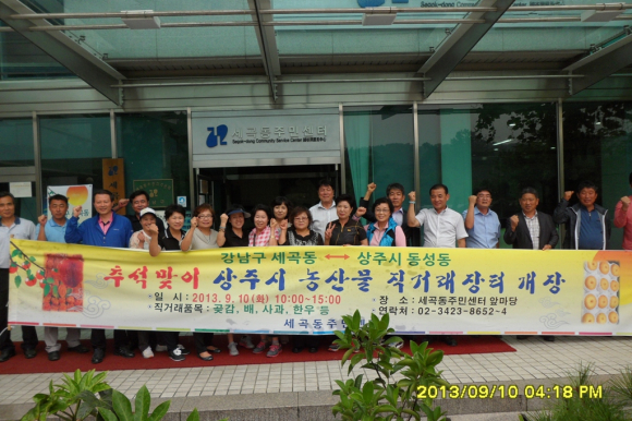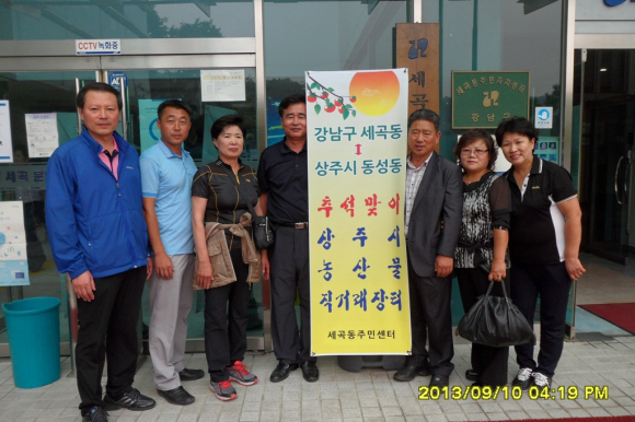 상주시 동성동은 지난 10일 우리 고유의 명절인 추석을 맞아 자매결연기관인 서울 강남구 세곡동 주민센터에서 추석맞이 농특산물 직거래 장터를 운영했다.