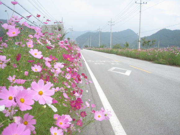 봉성면은 지금 코스모스가 활짝 피어 가을 분위기를 물씬 풍기고 있다.