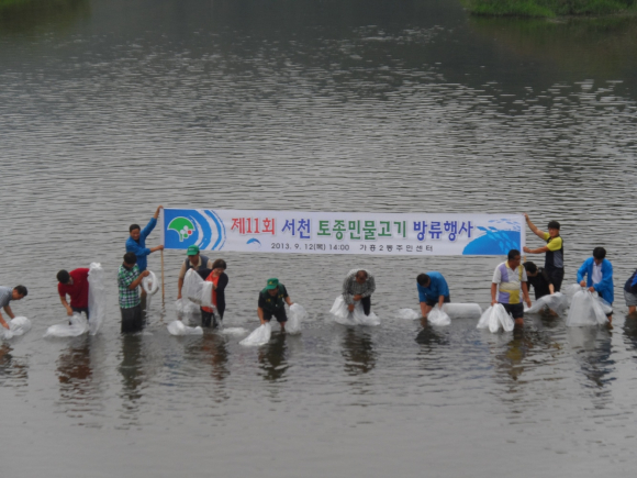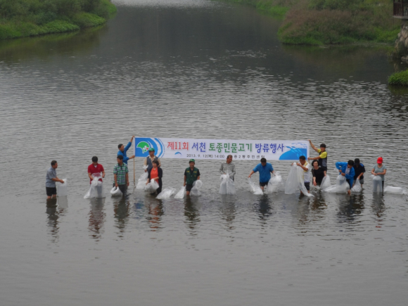 지난 12일 서천에 토종민물고기 5만 마리 방류