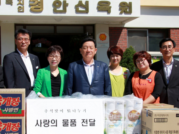 경상북도관광공사(사장 공원식)는 16일 풍성한 한가위를 맞이하여 지역 아동보호시설인 안동시 경안신육원을 방문하여 훈훈한 정을 나누고 화장지 등 생필품을 전달하는 ‘사랑 나눔 행사’를 가졌다.