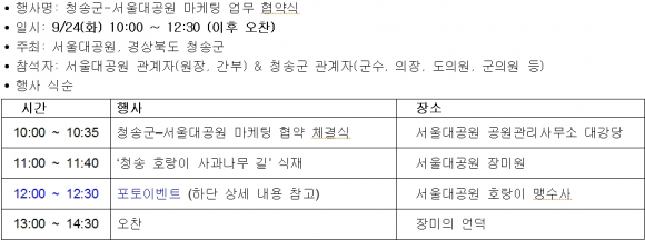 청송군-서울대공원, 24일 상생 마케팅 협약식 개최