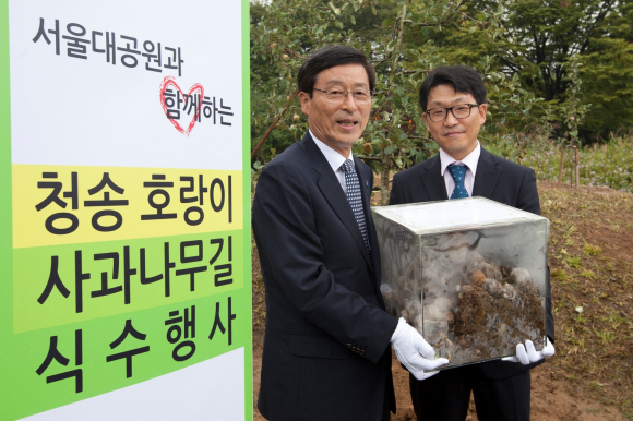 서울-지역 ‘가진 자원 나눕니다’ 서울대공원은 동물변 제공, 청송군은 사과 제공 자원순환형 창조경제 실천의 모범사례로 상생효과에 주목 -서울대공원, 호랑이변 포함해 비료화한 동물 배설물 청송 사과 농가에 제공 -청송군, 동물복지 차원에서 서울대공원에 매달 청송사과 10박스씩 동물 먹이로 제공