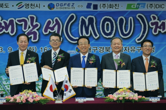 9월 현재 대구경북경제자유구역 10개 사업지구에 유치한 8개 외투기업 중 5개기업이 영천첨단부품소재산업지구에 투자하기 위한 양해각서를 체결했다.