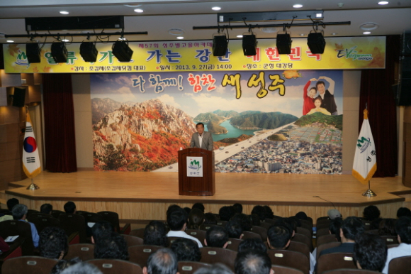 김항곤 성주군수는 인사말에서 ‘대한민국 대표 논객’ 조갑제 대표를 소개하며, “별고을 아카데미등 통해 일류국가로 가기 위한 선결조건인 군민 의식수준을 향상시켜, 국가 발전은 물론 군정발전에도 적극적인 참여를 바란다“고 말했다.