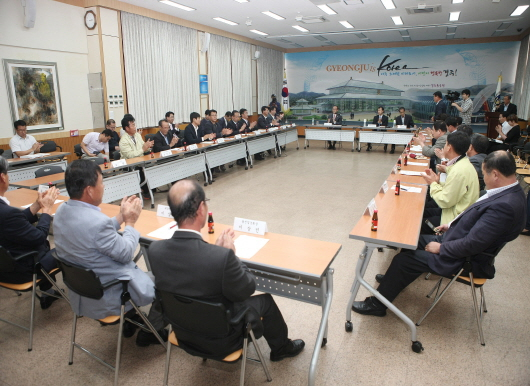 주요 내용으로는 동궁원 개장으로 인한 시범포 축소에 대한 대책, 농촌 지도인력 복귀, 경주시 농업발전기금 조성, 축사건폐율 상향, 사료값 인상에 따른 지원대책 등에 대하여 서로간의 의견을 개진하였다.