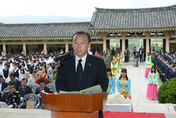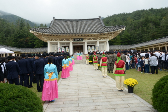 |  | | | ⓒ GBN 경북방송 | | 초청인사도 기관단체장, 국회의원, 도 ․ 시의원, 사회단체장, 언론인 등을 확대하여 많은 내빈들이 참석 하였으며, 행사에 직접 참여하는 학생들에게 화랑, 원화복, 조우관 착용 체험으로 행사의 품격을 높였다.