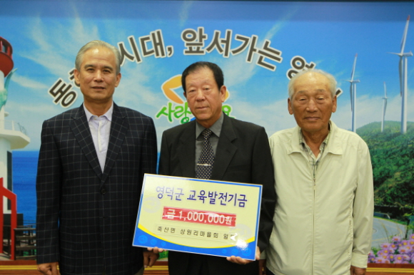 관내 고등학교 방과후 심화학습을 전담하고 있는 (주)교육그룹 정진 최윤정 대표는 “방과후 심화학습을 진행하면서 학생들의 공부에 대한 열의와 인재육성을 위한 영덕군의 적극적인 노력이 인상 깊었으며, 우리의 작은 정성이 교육발전기금조성사업에 보탬이 되었으면 좋겠다.”고 기탁금을 전달했고, 축산면 상원리마을회 이교창 회장은 “추석전후 군수님과 함께한 주민간담회에서 교육발전기금 모금이 막바지에 다다랐다는 이야기를 듣고 마을회기금 일부를 교육발전기금으로 기탁하기로 마을주민이 뜻을 모았다.”며 기탁의 뜻을 전했다.