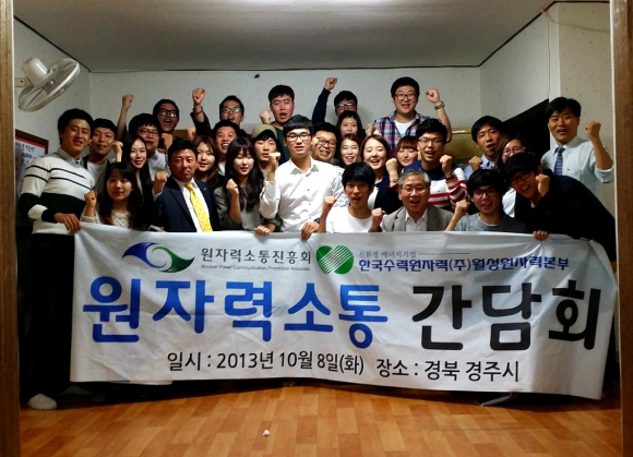 이번 간담회에는 한수원(주) 월성원자력본부 김관열 대외협력실장(원자력소통진흥회 자문위원), 이규찬 홍보팀장, 서경석 차장, 최영호 주임 등 한수원 측 인사 4명과 윤대길 회장, 정원일 감사부장, 서동혁 동국대 팀장, 김병준 위덕대 팀장, 김성경 부경대 팀장, 진헌 호남대 팀장 등 원자력소통진흥회 측 인사 30여명이 참석했다.