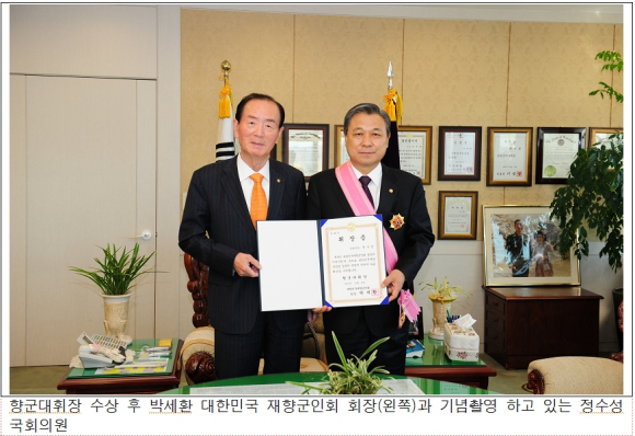 참전유공자 예우 법안 대표발의 및 재향군인회 발전 공로 인정 받아