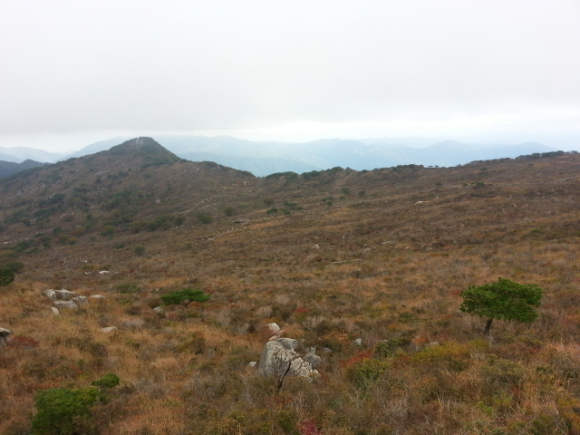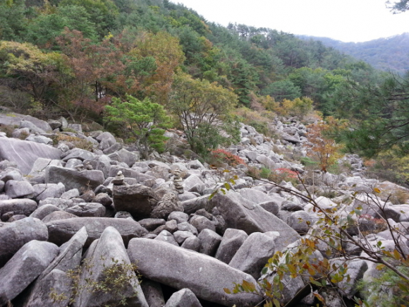 산은 초입부터 가을이 한참 내려오고 있었습니다. 비단옷으로 갈아입고 있는 가을의 정취 속에 땀 흘리며 올라가니 전망대는 쉬어가라 손짓하며 그 곳의 암괴류(岩塊流)도 반가이 맞아 주었습니다. 바위 덩어리가 골짜기에 흘러 내리면서 쌓여 있는 비슬산 암괴류의 바위 크기는 국내에서 가장 크고 학술적인 가치가 높다고 하여 천연기념물 435호로 보호를 받고 있습니다.