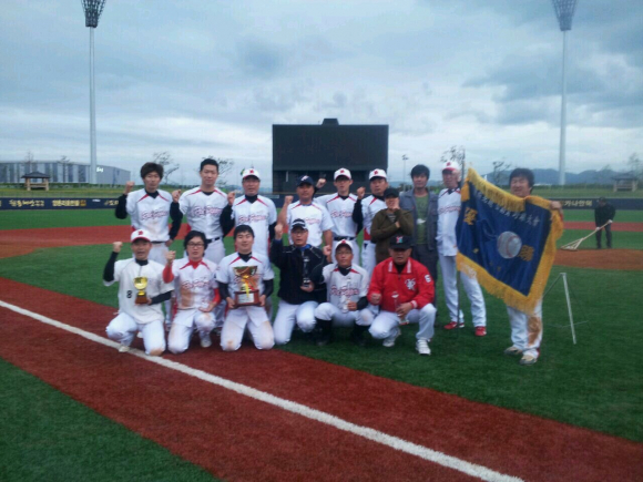 ▶ 시즌성적 : 6승 1무 3패(북부리그 3위로 포스트시즌 진출) ▶ 포스트시즌 - 8강 : 영천시청에 9:8로 승 - 4강 : 칠곡군청에 6:5로 승 - 결승 : 경주시청(2년 연속 우승팀)에 22:10으로 통합우승! ▶ 수상현황 - MVP : 최규민(보건소 근무) - 감독상 : 이윤욱(재무과 근무) - 타점왕 : 김현진(환경보전과 근무) - 장타율 : 주태국(영양고추유통공사 근무) |
