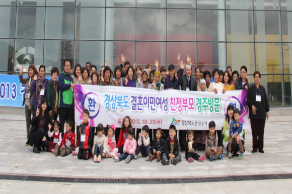 |  | | | ⓒ GBN 경북방송 | | 경주투어에 참여하는 친정부모는 베트남 3명, 태국 4명, 인도네시아 3명, 몽골 3명, 우즈베키스탄 3명, 키르키즈스탄 1명 등 총 6개국 17명 이며, 결혼이민여성의 한국 사회 적응과 다문화에 대한 국민적 관심을 제고하고, 대한민국 국민으로서 자긍심을 갖도록 하기 위하여 마련되었다.