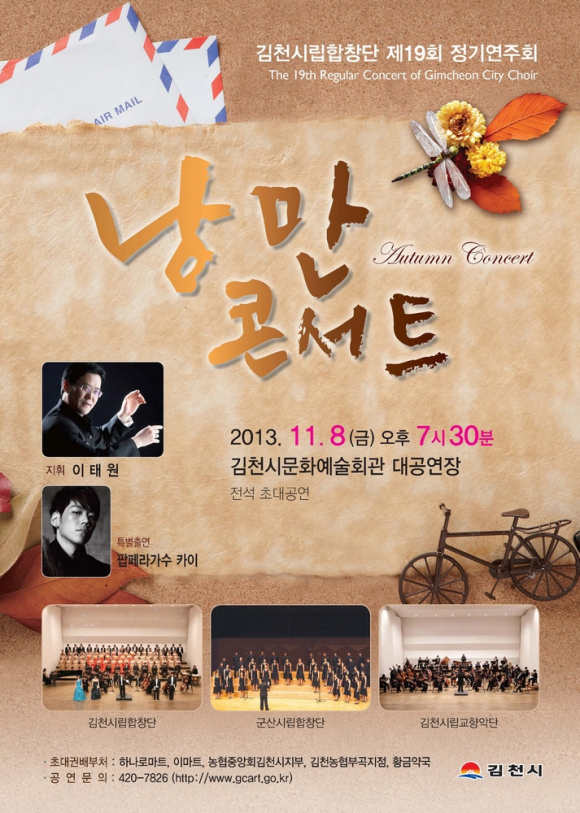 깊어가는 가을밤! 김천시립합창단과 자매도시 군산시립합창단, 그리고 팝페라가수 카이가 특별출연하여 시민들에게 가을의 정취와 낭만을 선사할 것이다.