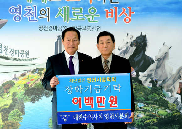 지역 가축위생 및 방역에 기여하고 있는 대한수의사회 영천시분회(회장 박병훈)는 지난 2009년 기탁을 시작으로 매년 200만원의 장학기금을 기탁하기로 하여 올해까지 800만원의 기금을 기부했다.