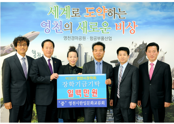 영천시 한일문화교류회(회장 박거원)는 2005년 10월에 창립해 현재 35명의 회원으로 구성되어 있으며, 일본어 학습능력 배양과 정보교류 등을 통해 한일문화교류에 중추적 역할했다. 박거원 회장은 “이번 장학금은 금액은 크지 않지만 한일문화교류회를 운영하면서 회비와 활동 수익금을 모아 마련한 것으로 지역 후배들이 교육걱정 없는 더 나은 환경에서 공부할 수 있기를 바란다.”며 기부 의사를 밝혔다.