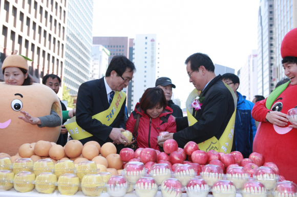 한편 영주사과 나주배 공동마케팅 사업은 2013년 대통령직속 지역발전위원회의 창조지역사업 “사과하면 배가 되는 영․호남 기쁨 창조사업”에 선정되어 2013~2014년까지 2년간 추진하고 있으며, 지난 추석 명절에는 영주사과․나주배 혼합세트 36천상자를 판매하여 21억 8천만원의 매출액을 올린 바 있다.