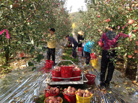 10. 28~11. 7까지 실과원소 및 읍면직원 170여명, 사과 수확 작업