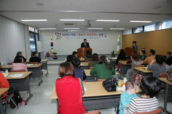 성주군 (군수 김항곤)은 10월 31일 14:00시 보건소 보건교육실에서 『다자녀 가정』부모 40여명을 대상으로 영유아 건강 강좌를 열었다.