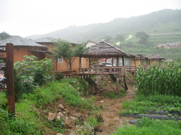 청명하던 하늘 먹구름 몰려와 빗줄기 우두둑우두둑..