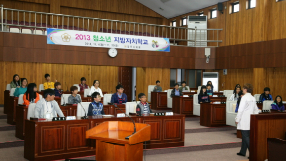 2013년 청소년 지방자치학교는 지역내 초등학생과 중학생을 대상으로 4일부터 8일까지는 초등학생 150명, 18일부터 22일까지는 중학생150명, 총 300명이 참여하며 청소년들에게 민주적 가치관 확립과 차세대 지도자로서의 역량을 키워주기 위해 지방의회의 활동상황과 역할에 대하여 알리고 회의운영 요령과 토론기법 등을 교육시킨다.