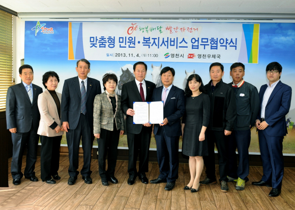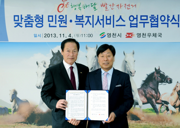 영천시는 4일 영천우체국과 사회소외계층을 위한 맞춤형 민원․복지 서비스 업무협약을 체결했다.
