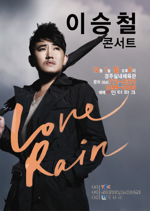 지난해 Rocky man으로 경주시민의 폭발적인 반응을 얻었던 라이브의 황제, 이승철이다시한번 경주를 찾는다. 늘 한결같은 마음으로 노래하는 대한민국 보컬의 신 이승철. 그리고, 그가 들려주는 감동의 무대 이승철 콘서트 part 2- Love rain 은오는 12월 1일 일요일 오후 6시. 경주 실내체육관에서 만날 수 있다.
