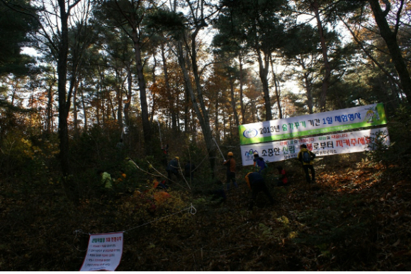 남부지방산림청 구미국유림관리소(소장 김윤병)는 지난 7일 김천시 증산면 수도리 국유림에서 소속직원, 임업기능인영림단 등 50여명이 참여하여 ‘숲가꾸기 1일 체험행사’를 가졌다.